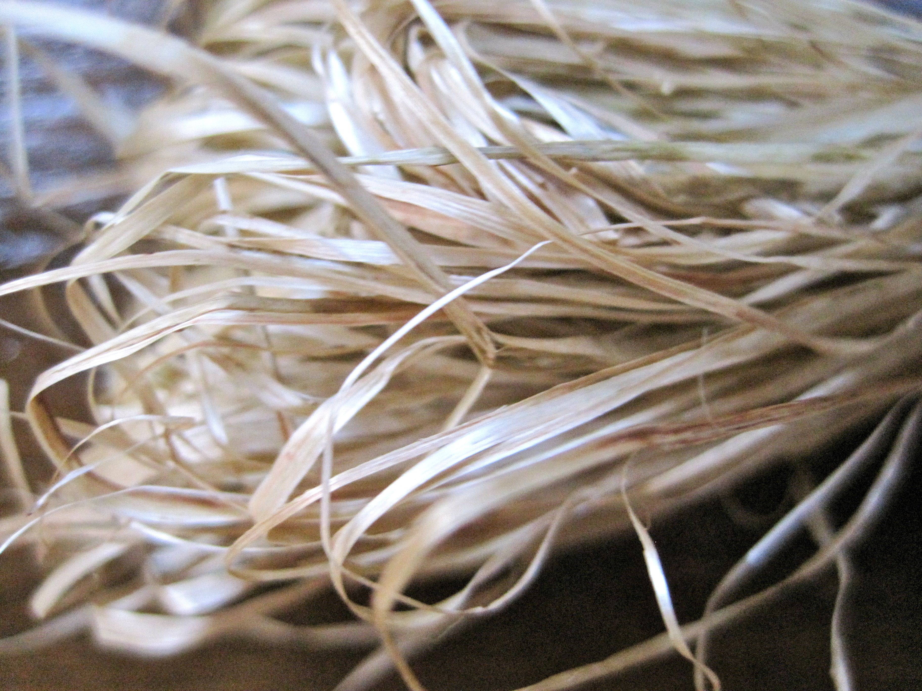 This is fiber taken from the kudzu vine. Here in the South kudzu is an invasive plant that can take over entire tracts of land in a season or two. Despite being an invasive weed it is a beautiful lush green against the sometimes dry and burnt colors of late summer. Kudzu flowers give off a thick sweet scent, vines can be woven into baskets, and the fiber from the vines can be woven into fabric.