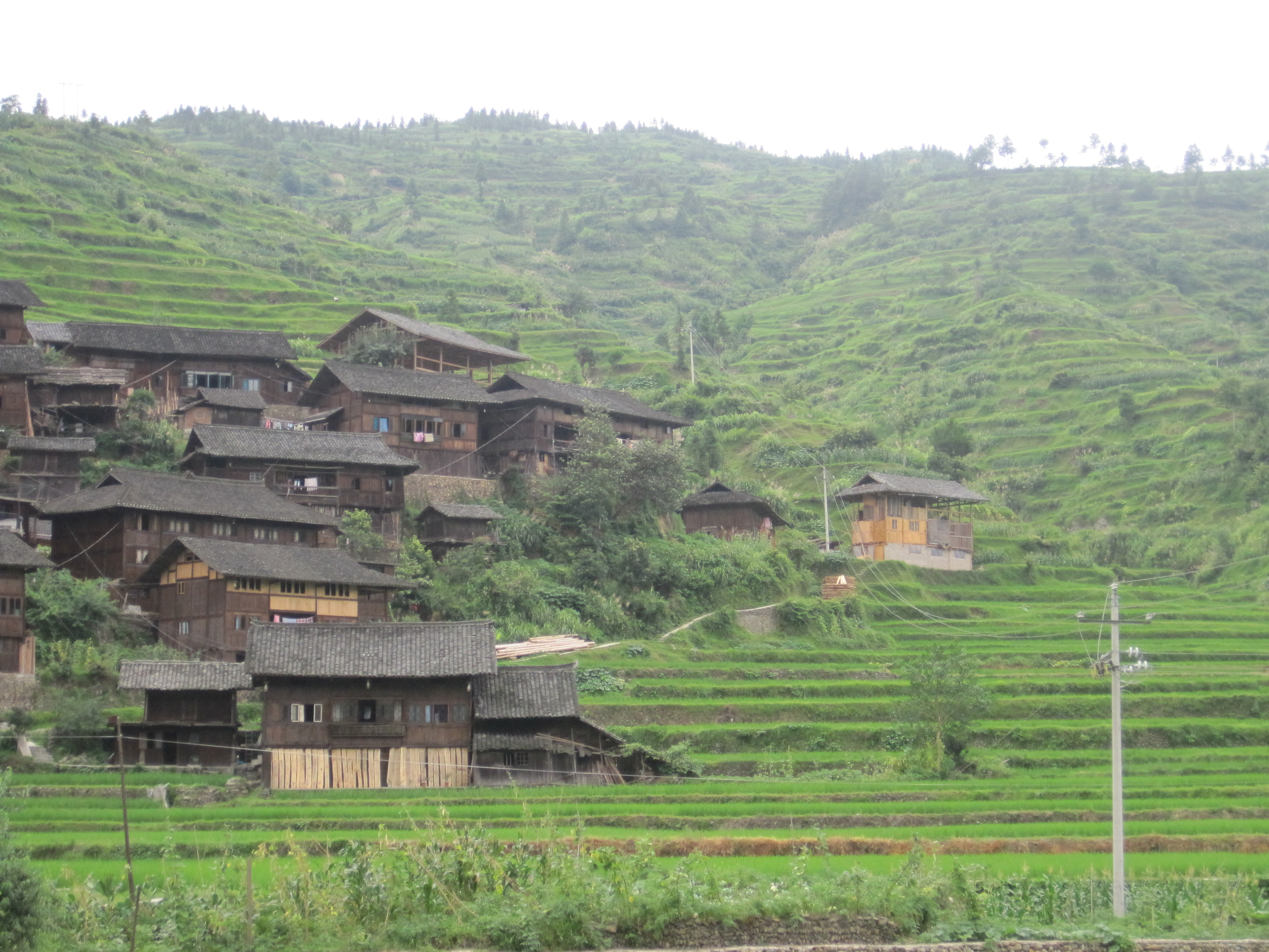 These Miao houses were near the village where I purchased these panels. It was July when I was there. It was extremely hot and the landscape was an almost other worldly green.