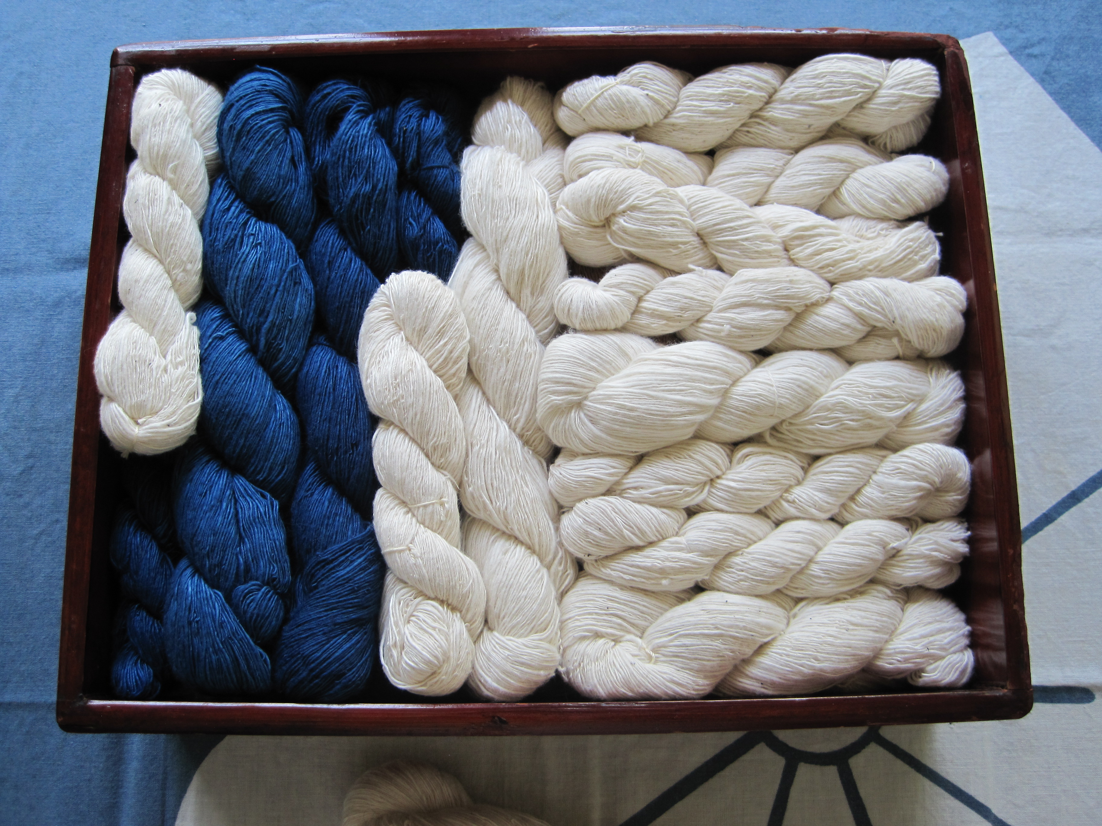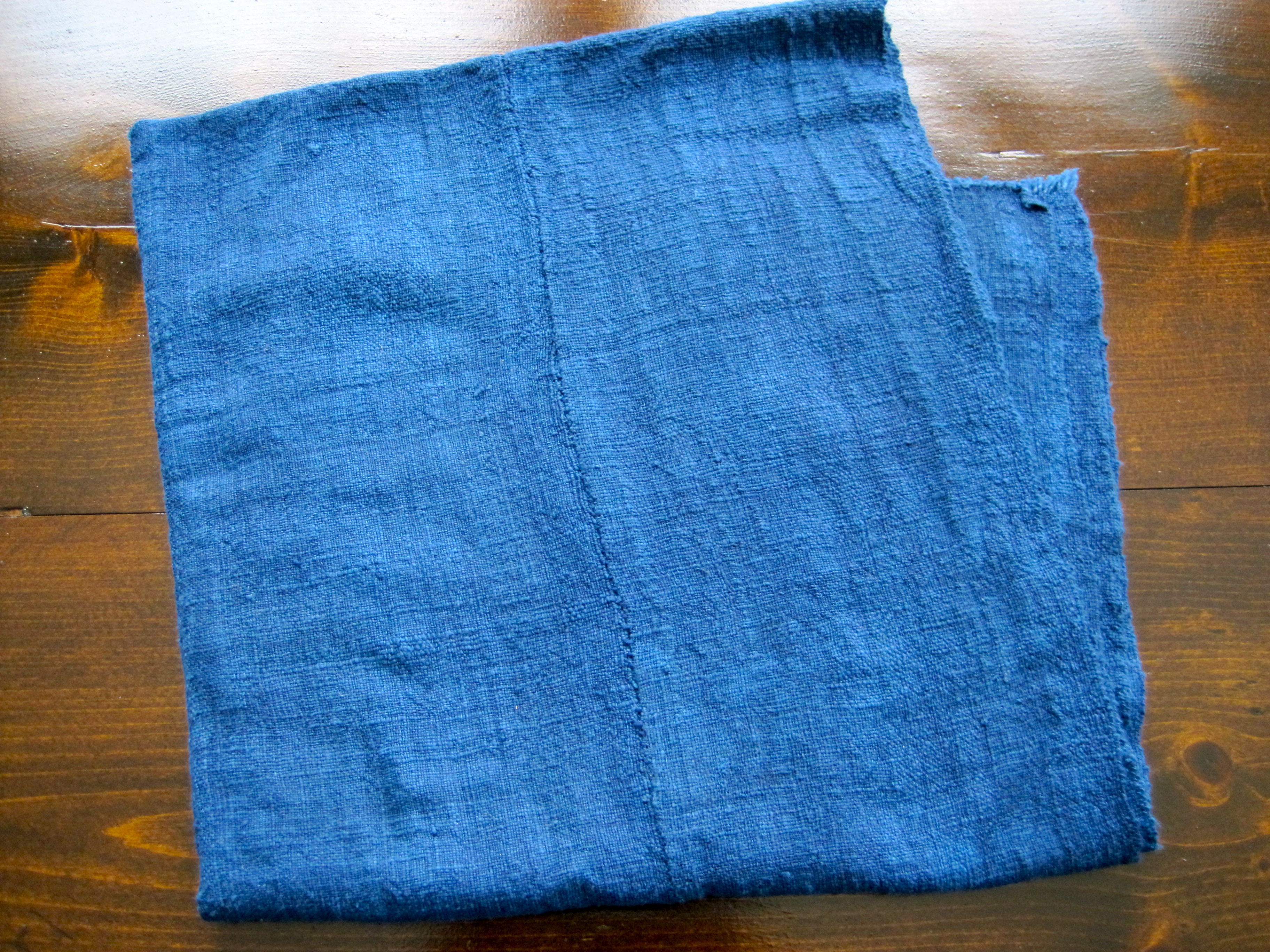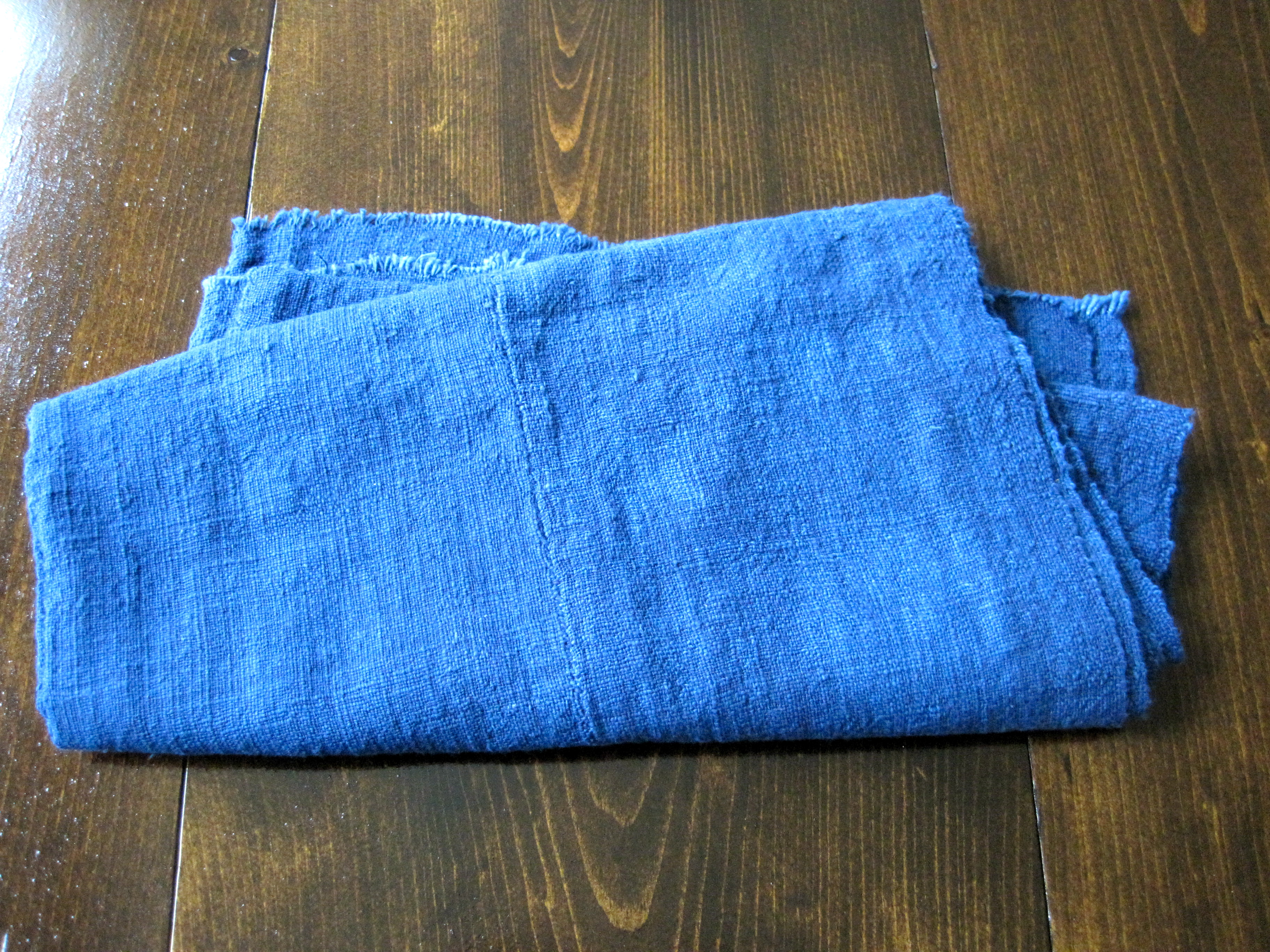 After the paste was no longer tacky I dyed some of the fabric pieces with indigo and the rest using kakishibu. The kakishibu dyed fabrics need to be exposed to strong sunlight in order to deepen the color of the dyed fabric. I am pleased with the simplified katazome fabrics that this experiment produced. I wrapped the fabrics up as gifts with some antique Japanese paper from old daifukucho.