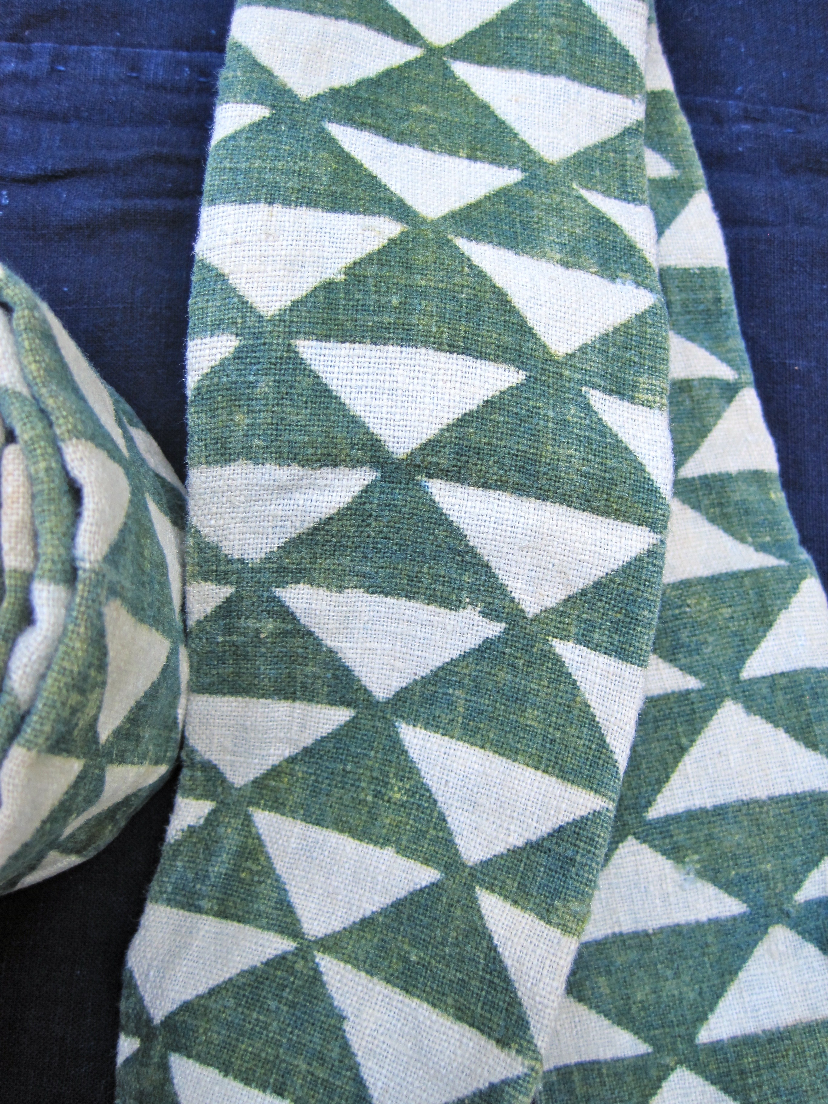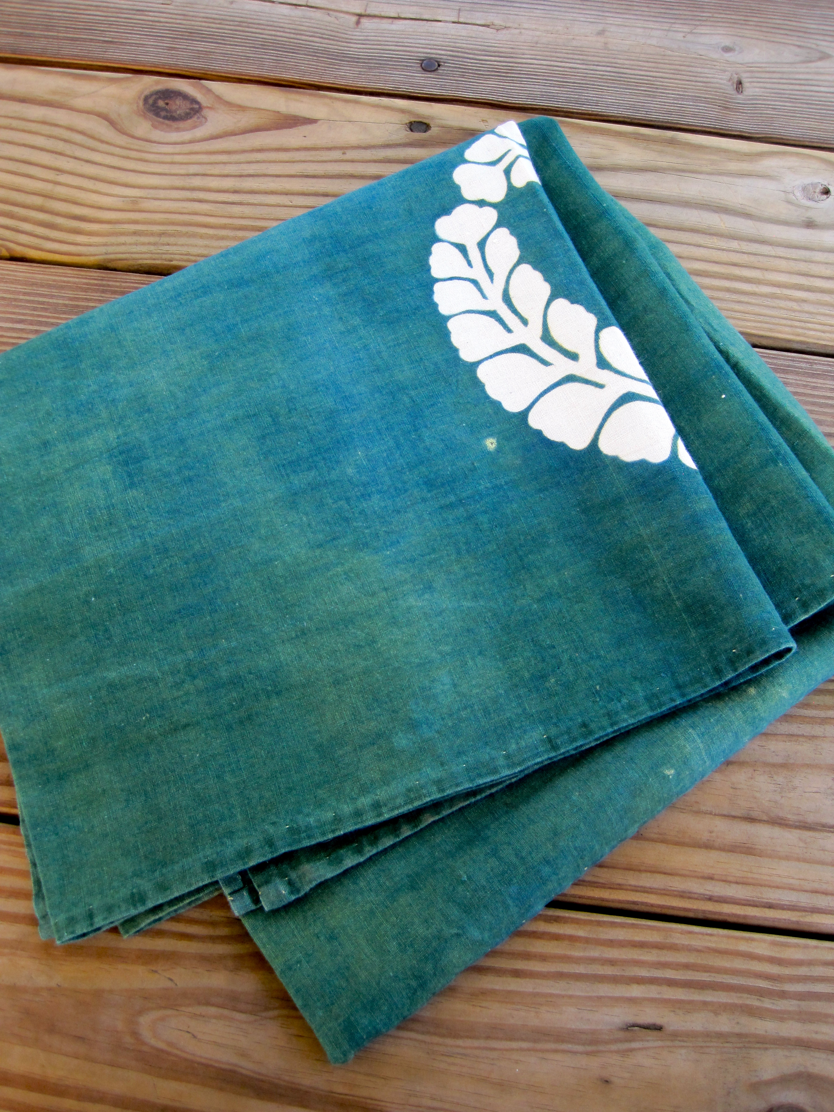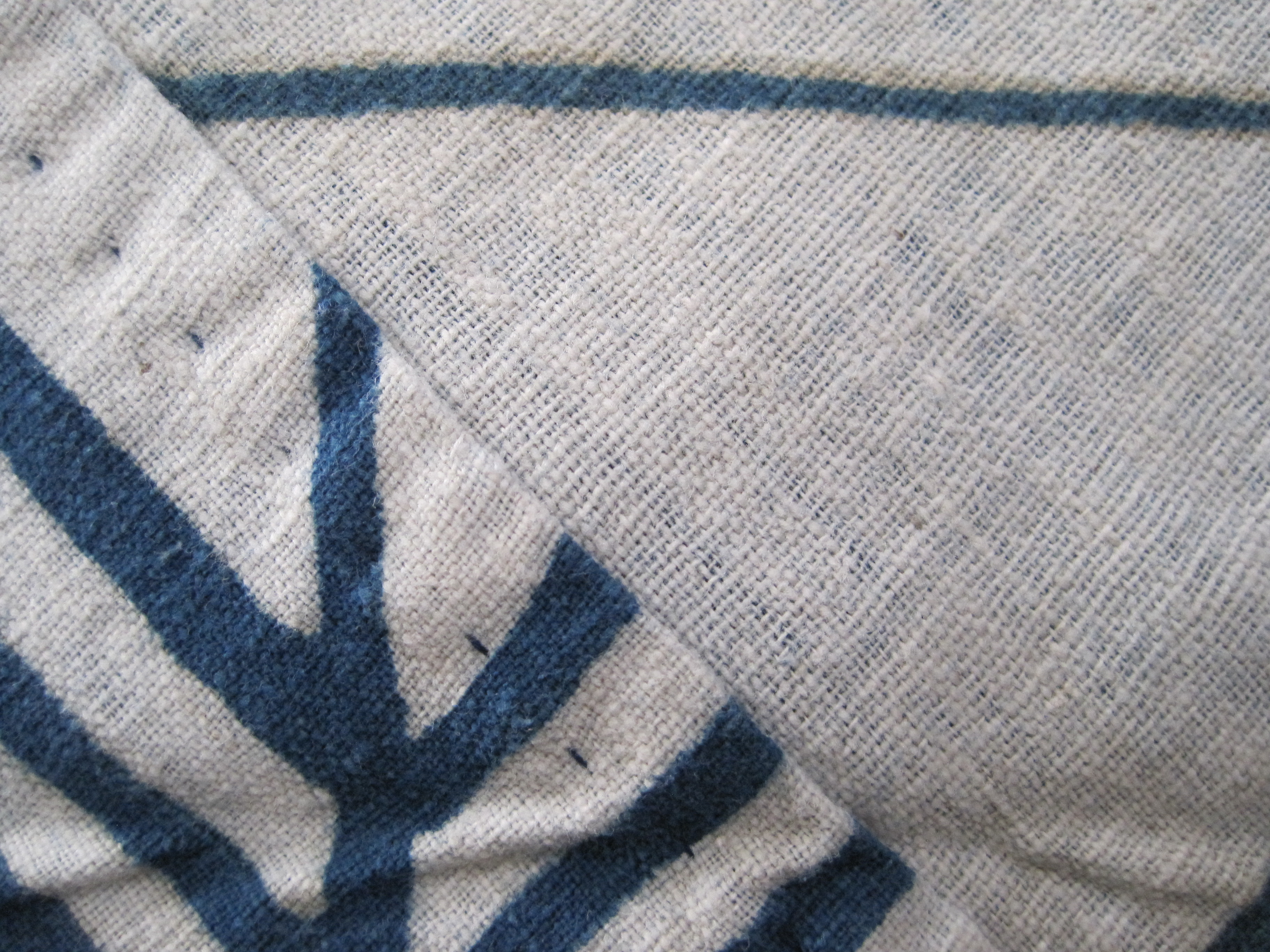 Three of these sashiko furoshiki were created from hand spun and handwoven cotton which has been dyed with natural indigo. the forth furoshiki with the star pattern is made from hand dyed commercially produced cotton.